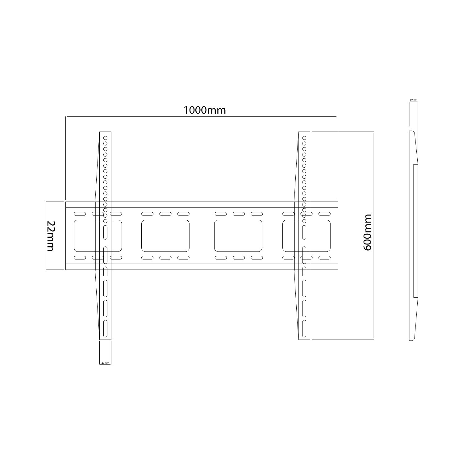 The TF-100F is an extra large heavy duty fixed TV wall mount that is tested four times of its stated load capacity. Includes all necessary screws for wall and screen installation. It supports most 55″-120″ flat panel TVs up to 200kgs/441lbs. VESA compatible with 1000x600mm maximum.