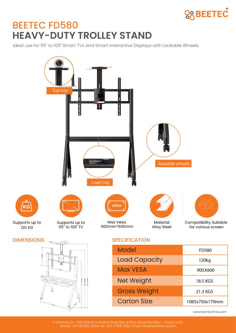BEETEC FD580 Heavy Duty TV Trolley Stand