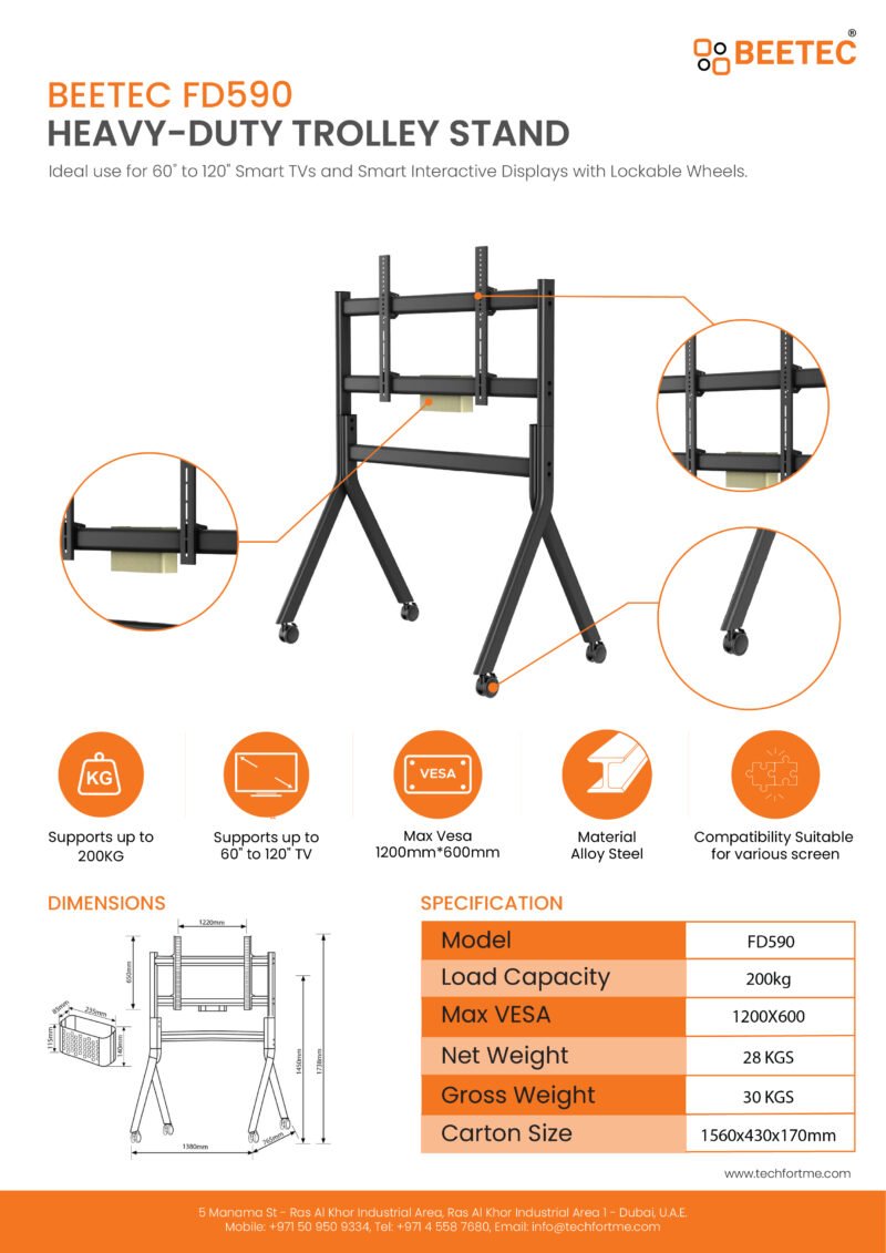 BEETEC FD590 Heavy Duty TV Trolley Stand