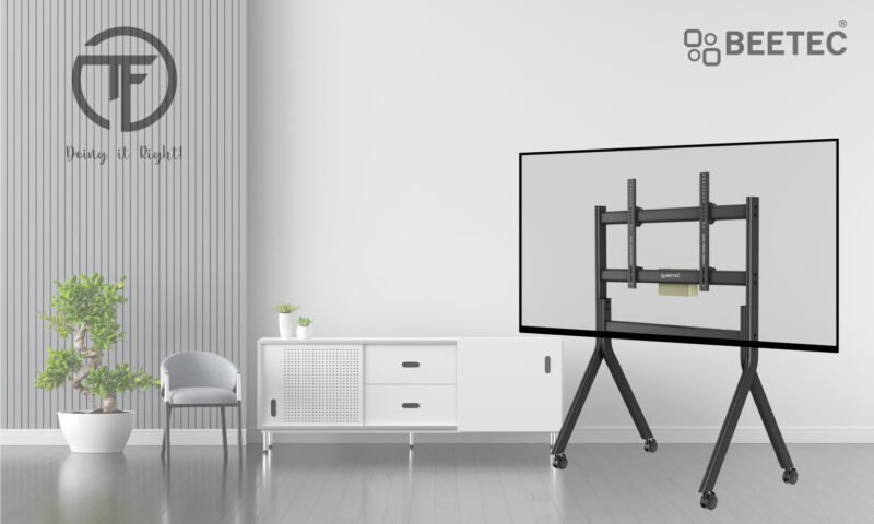 This heavy-duty mobile TV stand is designed to support large displays ranging from 86 to 110 inches. With a robust structure capable of handling up to 200 kg, it is ideal for conference rooms, classrooms, and exhibitions. The stand includes a wide VESA mounting compatibility of up to 1200×600mm, ensuring versatility with various screen types. Smooth-rolling wheels and a stable frame provide both mobility and safety.