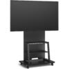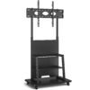 Built with high-grade steel and a re-inforced wide base, it effortlessly supports large displays while providing ample storage for gaming consoles, audio equipment, and decorative items. The sleek matte black finish ensures it blends seamlessly into any contemporary decor.
