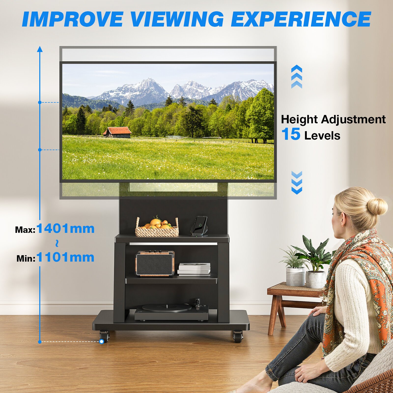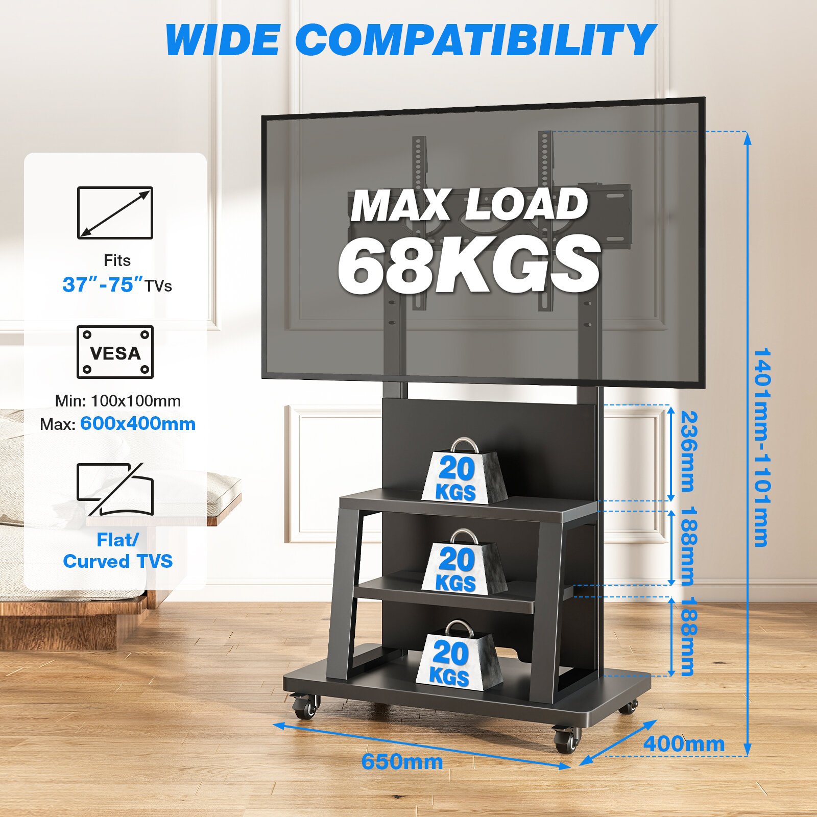 Elevate your viewing experience and declutter your living space with this versatile, Heavy-Duty Mobile TV Stand. Designed for both professional and home use, this all-in-one solution combines a robust television mount with a three-tier media console. Whether you need a portable display for office presentations or a stylish, movable home theater setup, this stand provides the stability and flexibility required for modern screens.